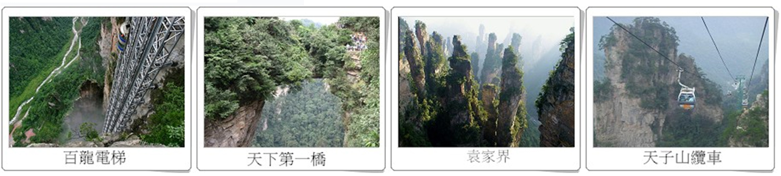 | ◎ | 行程若因自然天候影響或維修,環保車停駛,”天子山景區”行程則改為纜車上下或百龍電梯上下。 |