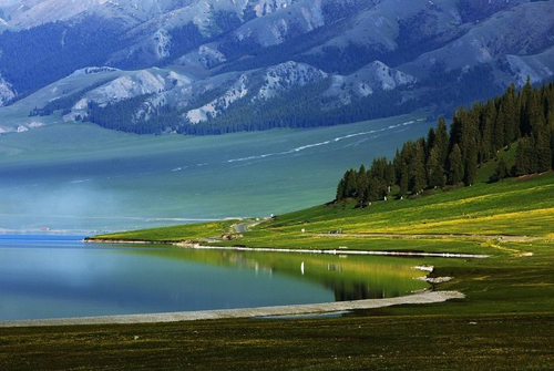 | ● | 【塞里木湖】(含門票進入海西風景區域)蒙語稱「賽里木淖爾」,意為「山脊樑上的湖」,湖面海拔2,073公尺,面積450多平方公里,是新疆海拔最高、面積最大的高山湖泊,被稱爲「天池」、「乳海」;每至春夏交替時節,湖邊綠草如茵、鮮花繁茂、山坡上氈房錯落、牛羊如雲似錦、湖水清澈湛藍,深淺變幻有如色染;要不是能看見遠處雪山延綿,真會以爲它是茫茫大海。 |