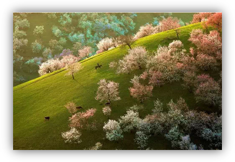 | ● | 【那拉提景區】沿盤山公路緩緩而上,在叢林與草原中穿梭,北部是片片農田,四季色彩變換;天界台是森林與草原的天然分水嶺,一側是如巨蟒般蜿蜒無盡的公路,一側是遼闊壯美的高山草甸草原,恰普河水四季奔騰不息,滋潤這篇沃土,春季的青翠、夏季的繁華、秋季的金彩、冬季的清雅…;遊牧人家綜合接待中心,松林、草原、河流、繁花、木屋、氈房、牛羊共同交織成一幅巧奪天工的絕美畫卷,徜徉在如詩如畫的美景中,親自體驗遊牧民族的生產生活。這裡被《中國國家地理雜誌》評為中國六大最美的草原之一。 |