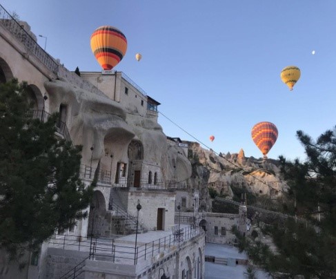 | ● | 特別安排【體驗土耳其最熱門熱氣球之旅】價值 每人USD230 我們特別安排了最受大家歡迎的熱氣球活動!隨著汽球冉冉升空,在空中俯瞰壯麗的卡帕多細亞,您千萬別錯過。活動約一個小時,結束後會開香檳及發放證書慶祝。(因有懼高症或特殊疾病者不適宜,故敬請自行評估健康及安全狀況)。 |