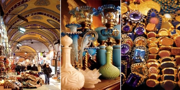 | ● | 【傳統大市集】在伊斯坦堡有一座舉世聞名的室內大市集,聚集了4千多家店在一條條錯綜複雜的室內街道中,一走進鼎鼎有名的室內大市集,在如迷宮般的街道裡,五花八門的商店雲集,黃澄澄的金飾、色彩鮮豔的地毯、異國風味的香料以及精巧的手工藝品讓人目不暇給。 |
